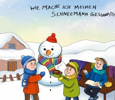 Es hat geschneit. Zusammen mit Papa und seinem jüngeren Bruder Oskar rollt Theo große Schneerollen zusammen und gemeinsam bauen sie
