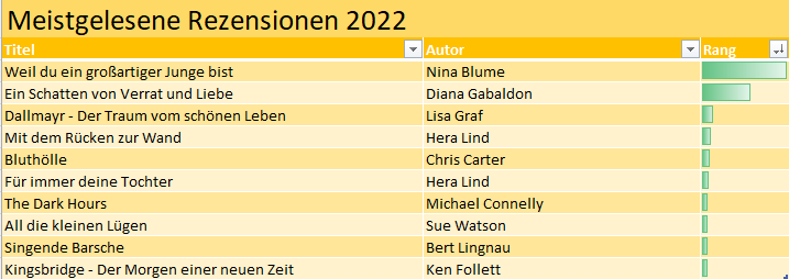 Top-Ten Buchrezensionen 2022! Wie schon in den Jahren zuvor nennen wir euch hier die zehn am meistgelesenen Rezensionen des vorigen Jahres. Sie werden einhergehen mit den Büchern, die im Netz am meisten gesucht werden. Diese Liste ist immer wieder spannend. Es sind: